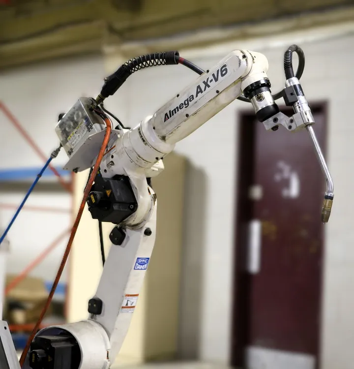 The OTC Daihen ALMEGA AX-V6 welding robot is a versatile industrial robot designed for efficient and flexible welding applications. Featuring seamless integration with an OTC Welder, it enhances productivity and weld quality while reducing defects. Ideal for arc welding, assembly, and material handling, this used robot offers significant benefits, including improved safety and long-term cost efficiency, making it an attractive option for businesses looking to automate their welding processes.