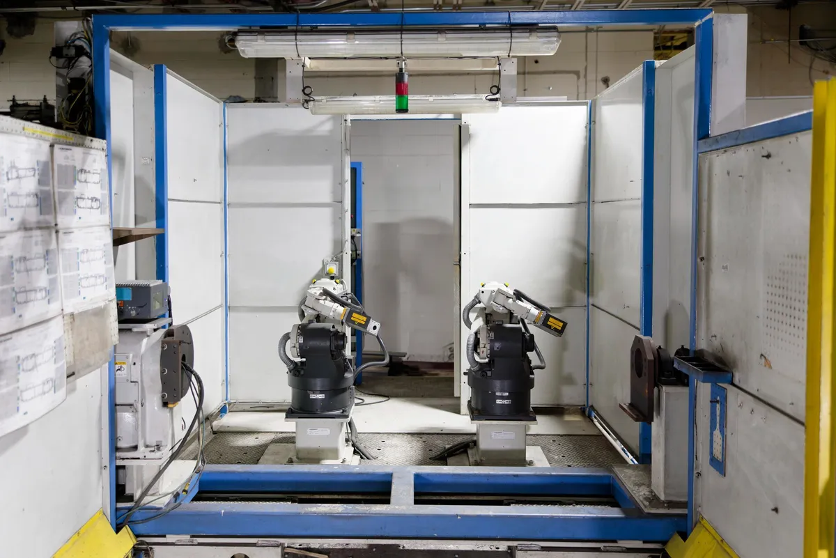 The inspection cell features Panasonic cells with a Dual TA1400 Vision System, a Panasonic headstock and tail, and dual SICK 3D cameras for high-speed and precise parts inspection. This integrated system on a common platform is designed for rapid and accurate 3D vision inspection, making it ideal for industries requiring high precision and efficiency, such as automotive and electronics manufacturing.
